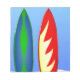 mit coolem Design von zwei bunten Surfbrettern, die am Strand stehend sind. Diese Surfbretter sind im Retro-klassischen Stil gehalten und erinnern an einen sonnigen Sommertag am Strand. Ein großartiges Design für Liebhaber des Strandes und des Surfens.