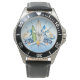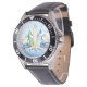 Herrenuhr aus Edelstahl mit schwarzem Lederarmband