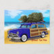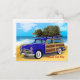 Surfendes Woodie mit Weihnachtsbaum Feiertagspostkarte