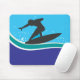 Silhouette eines Surfer und des Blaus und des Weiß bewegt wellenartig.