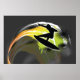 Surfer schwarze Figur & farbenfrohe Welle auf grau Poster
