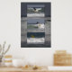Dies ist ein dreiteiliges Farbbild, das als Triptychon bekannt ist. Dies zeigt die Progression des Surfens. Das erste Bild hat den Surfer hoch und gut zu laufen. Das zweite Bild zeigt, wie der Surfer anfängt auszulöschen. Das dritte Bild zeigt die Spitze des Surfbretts, die aus den Wellen herauskommt. Der Hintergrund in diesem Bild ist eine große Welle.