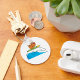 Ein Bulldogge im Stil eines Cartoon, der auf einer Welle surft. Dieses Design wirkt auf diesem Schlüsselanhänger wirklich effektiv