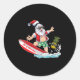 Surfing Santa Beach Holiday Plams Christmas In Jul Runder Aufkleber