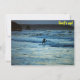 Ein Surfer reitet bei Sonnenuntergang eine atlantische Welle an der Nordküste Cornwall, England, Großbritannien.