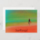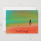 Digitales Foto eines Surfers stehend am Strand mit Blick auf den Atlantik in Cornwall, England, Großbritannien