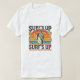 Hier ist ein weiteres trendiges Design im Vintagen Stil mit einer Retro-Strandszene mit einem Surfer, einem verblassten Sonnenuntergang und der Phrase "Surf's Up" 🌊 🌞.