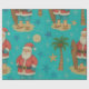 Surfside Santa Stroll Santa nimmt eine tropische Drehung an Weihnachten in diesem lebendigen Design, mit ihm in Flip-Flops mit seinem Surfboard in der Hand, umgeben von Palmen, Muscheln und Seesternen. Set vor einem fröhlichen Aquahintergrund, verbindet dieses Muster die Wärme der Ferien mit dem entspannten Charme eines Strandurlaubs. Ideal für die Weihnachtsverpackung an der Küste, Dekor oder festliche Kunsthandwerksprojekte, die den Stil des Meeres feiern.