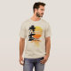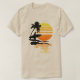 Surfgrafik eines Surfers und eines Sonnenaufgangs über dem Wasser.