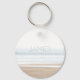 Personalisierter Strandkeyring, der einen Strand mit abstürzender Brandung zeigt. Ein wunderschönes Geschenk für einen Surfer oder einen Wassersportfreund zum Geburtstag. Seaside Image aufgenommen in Summerleaze, Bude Cornwall, UK.
