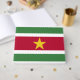 In diesem Design ist die Nationalflagge Suriname (offiziell als Republik Suriname bekannt) zu sehen, ein Land an der nordöstlichen Atlantikküste Südamerikas. Surinam grenzt im Norden an den Atlantik, im Osten an Französisch-Guayana, im Westen an Guyana und im Süden an Brasilien. Surinam ist der kleinste souveräne Staat Südamerikas. Der größte Teil der Bevölkerung des Landes lebt an der Nordküste, in der Region von Surinams Hauptstadt und der größten Stadt, Paramaribo.