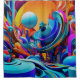 Eine abstrakte, surrealistische Komposition, die fette, kontrastreiche Farben, verzerrte Formen und unerwartete Gegenüberstellungen kombiniert.
