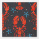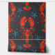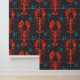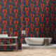 Surreal Animal Design mit Hummer Muster im Blockdruckstil. Vintage Tiere Tapeten mit roten Hummern.