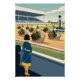 Surreal anthropomorphic animal posters designed in the iconic WPA 1930s national park style. These surreal posters feature anthropomorphic snails being ridden by seven gnomes, or maybe they're dwarves, who knows. Is the race being watched by a snow white lookalike person? Maybe, or is she just a woman with short black hair who likes to watch seven dwarf types riding on anthropomorphic snails?