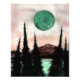 Surreal Berglandschaft mit immergrünen Bäumen Fotodruck