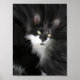 Schöne schwarz-weiße Tuxkatze in manipuliertem Foto