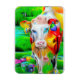 Dieses auffällige digitale Kunstwerk besticht durch eine psychedelische Kuh, die in lebendigen, surrealen Farben dargestellt wird, durch Set gegen ein fantasy-inspiriert grünes Feld. Mit leuchtenden Farben und traumhaften Texturen verbindet es die natürliche Welt mit fantasievoller Abstraktion - perfekt für Fans von farbenfrohen Tieren, Surrealismus und trendiger Kunst zum Thema Landwirtschaft