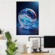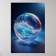 Surreal Glaskugel mit dynamischen Wasserwellen Poster