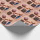 Wrap deine Geschenke mit einer Touch des Unerwarteten mit diesem surrealen Packpapier. Das Design zeichnet sich durch ein sich wiederholendes Muster verschiedener scheinbar unzusammenhängender Objekte aus, die in einer Stilllebigkeit-Komposition angeordnet sind. Sie finden ein polka-gepunktetes Ei, glatte runde Kugeln, strukturierte braune Brauntafeln, schillernde blaue, quillartige Formen und gekrümmte braune Formen, alles Set vor einem weichen pfirsichfarbenen Hintergrund. Dieses einzigartige und faszinierende Muster ist perfekt für diejenigen, die abstrakte Kunst und eine skurrile, zum Nachdenken anregende Präsentation mögen.