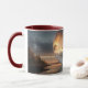 Warm golden light spills across the scene, contrasting beautifully with cooler blues and shadowed clouds, while the stillness of the water amplifies the sense of calm and symmetry. Trees along the shoreline frame the composition subtly, grounding the cosmic elegance of the sphere in a peaceful natural setting. The result feels timeless, meditative, and quietly powerful.