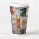 Surreal schwebende Kugeln und Würfel Milchtasse