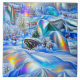 Tauchen Sie ein in eine faszinierende Winterlandschaft, in der schneebedeckte Berge mit strahlenden Farben schimmern. Dieses surreale Kunstwerk verbindet Fantasie und futuristische Elemente und schafft eine traumhafte Landschaft, die sich sowohl magisch als auch weltlich anfühlt. Ideal für diejenigen, die abstrakte, neon-inspirierte und mystische Designs für Wandkunst, Drucke und Accessoires Liebe haben. Diese Landschaft wurde mit einem Foto meiner Katze als Prompt in einem Kunstgenerator erschaffen.