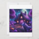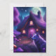 Surreale Hütte im Wald mit Wolf, Pilzen, Bäumen, Sternen und Mond