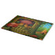 Das Glasschneidebrett zeigt, wie die KI eine surreale digitale Kunstmalerei eines Baumes hervorbrachte, der in einem geschnitzten Baum mit Treppen in einem magischen Wald wächst.