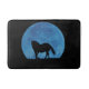 Ein schönes Pferd, das in einem großen blauen Vollmond silhouettiert ist. Die Details des großen Grases werden durch und der Mond hat Glitzern. Großartige Pferdeakzente für Ihr Bad. Sehr dramatisch mit dem Blau gegen das Schwarze.
