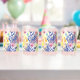 Surrealistisches Gartenmuster auf weißem Hintergrund.