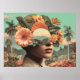 Surrealistisches weibliches Porträt mit floralen E Poster