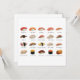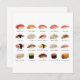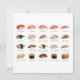Die Illustration umfasst 20 verschiedene Sushi-Typen auf weißem Hintergrund
