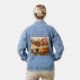 A flowing lineup of exquisite nigiri – uni, ikura, maguro, shellfish – gracefully arched across a natural wooden background. This unique sushi composition is now wearable on a bold denim canvas. Equal parts gourmet and graphic design, this jacket turns culinary elegance into street-ready style. For those who dare to wear their appetite with pride.