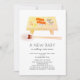 Diese niedliche und kawaii "ein neues Baby rollt in die Stadt" Gender-neutrale Virtual/Zoom/Online Baby Dusche Einladung beinhaltet Sushi und Rollen auf einem Holzbrett mit einem Paar Stäbchen in Aquarell auf weißem Hintergrund. Die Rückseite weist einen weißen Hintergrund mit grauen Wellenmustern auf. Ändern Sie die Hintergrundfarbe sowohl auf der Vorderseite als auch auf der Rückseite und personalisieren Sie sie für Ihre Bedürfnisse.