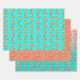 Niedliche Sushi-Rollen und Lachs-Sushi-Muster auf Papierbögen. Das Paket beinhaltet Aqua, Lachs und rosa bis blaue Farbvarianten.