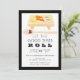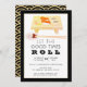 Dieses stilvolle und moderne "Lass the good times roll" Geburtstagsfest lädt mit wasserfarbenem Sushi auf Holzbrett und mit Stäbchen auf weißem Hintergrund gerahmt von einem schwarzen Rand ein. Die Rückseite weist Wellenmuster in Schwarz und Imitat Gold auf. Ändern Sie die Hintergrundfarbe sowohl auf der Vorderseite als auch auf der Rückseite und personalisieren Sie sie für Ihre Bedürfnisse.