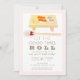 Diese stilvolle und moderne "Lass the good times roll" Party Einladung des neuen Jahres bietet wasserfarbene Sushi auf Holzbrett mit Stäbchen auf weißem Hintergrund gerahmt von einem rot-rosa Rand. Auf der Rückseite finden Sie Diagnosestreifen in Rosa und Imitat Gold. Ändern Sie die Hintergrundfarbe sowohl auf der Vorderseite als auch auf der Rückseite und personalisieren Sie sie für Ihre Bedürfnisse.