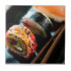 Nahe Sushi-Fotografie mit Kaviar, Sesamsamen und Algen.