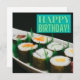Eine lustige Geburtstagskarte mit einem Neon-Schriftart für Sushi-Liebhaber. Hier gibt es ein Foto köstlicher Sushi-Brötchen.