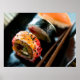 Nahe Sushi-Fotografie mit Kaviar, Sesamsamen und Algen.