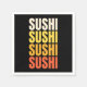 Einfaches farbiges Textdesign mit "Sushi, Sushi, Sushi, Sushi" Text in beige, gelb, orange und rot