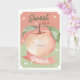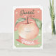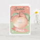 Versenden Sie eine kleine Süße mit dieser reizenden Wasserfarben-Grußkarte „Süß wie ein Pfirsich“. Mit einer handgemalten Pfirsich-Illustration in sanften Rosa-Tönen, zarten grünen Blättern und einem fröhlichen lächelnden Gesicht bringt dieses Design Wärme und Charme in jeden Anlass.