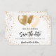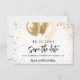 Ein schick weißer Hintergrund mit vergoldetem Glitzer und Imitaten. Personalisieren und fügen Sie Datum und Name/Alter hinzu. Der Text: Save the Date ist mit einem großen angesagten, handgeschriebenen Stilskript geschrieben.