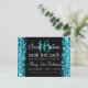 Süße 16 Save the Date türkisfarbene Party Glitzern Ankündigungspostkarte