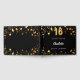 Ein stilvoller schwarzer Hintergrund mit goldenen Imitaten. Fügen Sie Ihren Namen und Text hinzu. Die Altersnummer wird mit einem Schriftart im Ballonstil geschrieben. Spine: Fügen Sie Ihren Text hinzu.