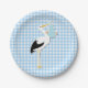 Süße blaue Gingham-und Storch-Babyparty-Platte Pappteller