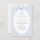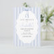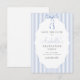 Verleihen Sie Ihrer Abschlussfeier einen stilvollen Rahmen mit unseren schicken und trendigen Save-the-Date-Karten zum Schulabschluss. Diese eleganten Einladungen mit blauen Streifen und einer süßen Wasserfarbe-Blauen Schleife, die zu einer Schleife gebunden ist, vereinen stilvoll Stil und Eleganz.