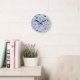 Eine helle und fröhliche Kinder-Wanduhr mit süßen Käfern, Bienen, Marienkäfern, Blumen und Schmetterlingen auf blauem Hintergrund — perfekt für eine lustige Kinderzimmer- oder Spielzimmer-Dekoration.