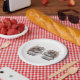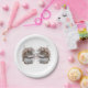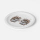 Dieser niedliche PapierTeller kennzeichnet entzückende kleine rote Eichhörnchen mit braunem und weißem Pelz im Winterschnee.