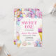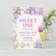 Feiern Sie den großen Meilenstein Ihres kleinen mit dieser "Süßen Eins"-Einladung! Mit einer märchenhaften Pastell-Ballonarkade, Donuts und Eiscreme entspricht sie perfekt den beliebten Donut-Themenparty-Dekorationen. Die Rückseite zeigt einen sauberen Rahmen für das Foto Ihres Babys und eine herzliche Nachricht. Einfach anzupassen für ein professionelles Aussehen.